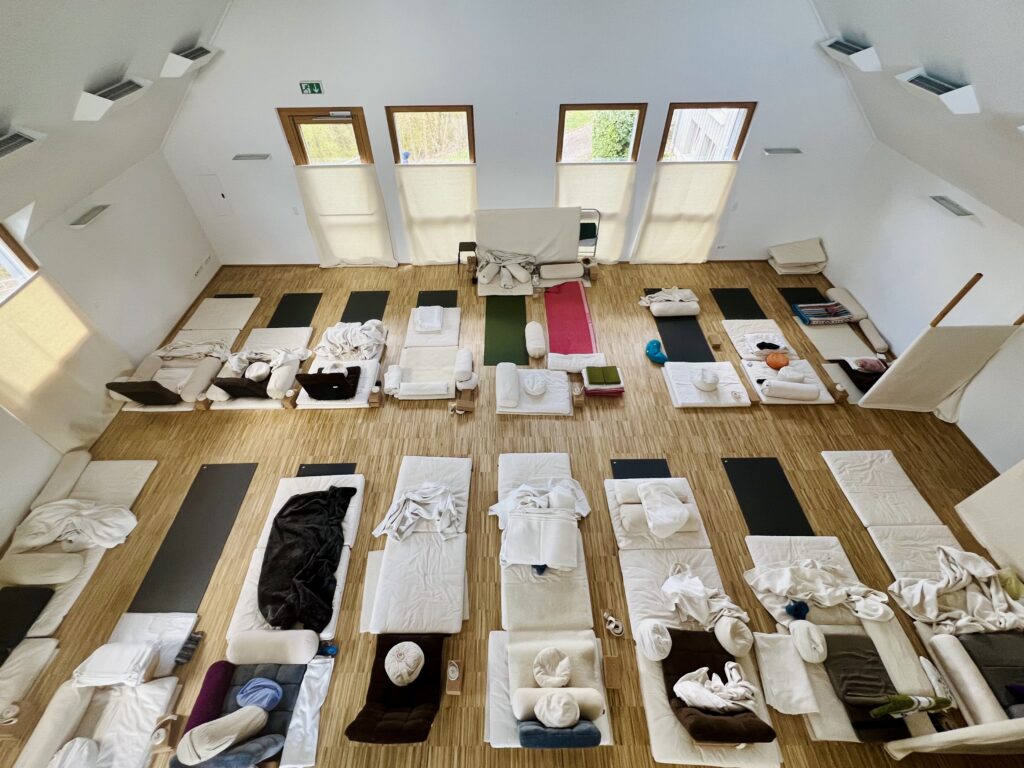 Der Tagesablauf und die Mahlzeiten unserer Retreats formen eine Struktur, mit der Du den ganzen Tag leicht mitfließen kannst. Da unser Ansatz Entspannung ist, darfst Du Deine Körperstellung jederzeit leise verändern, sodass Du es bequem hast.